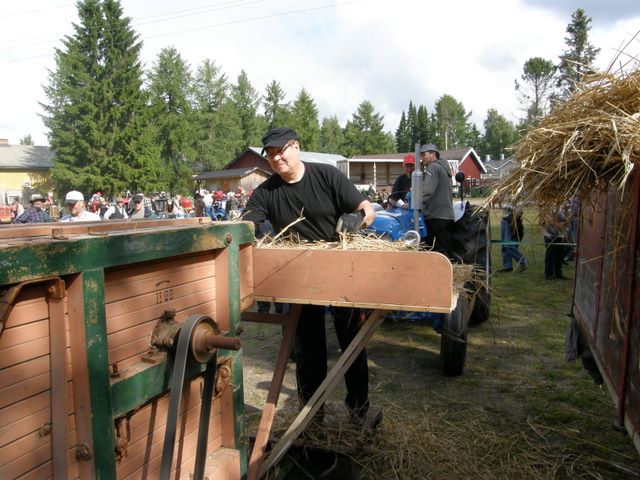 kooste 2011 -- Seppä syöttämässä puimakonetta.